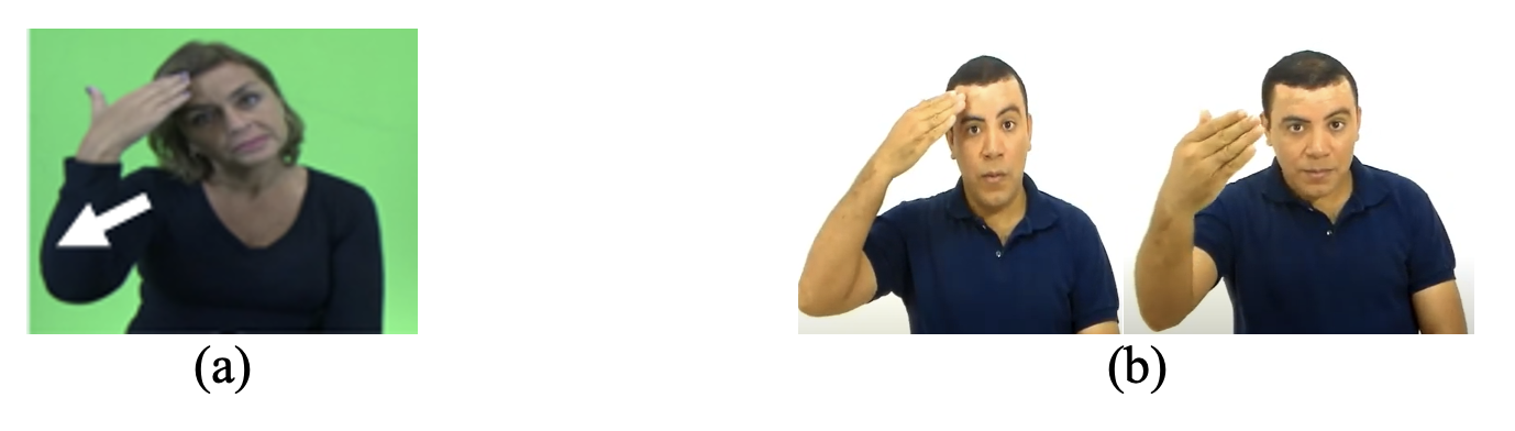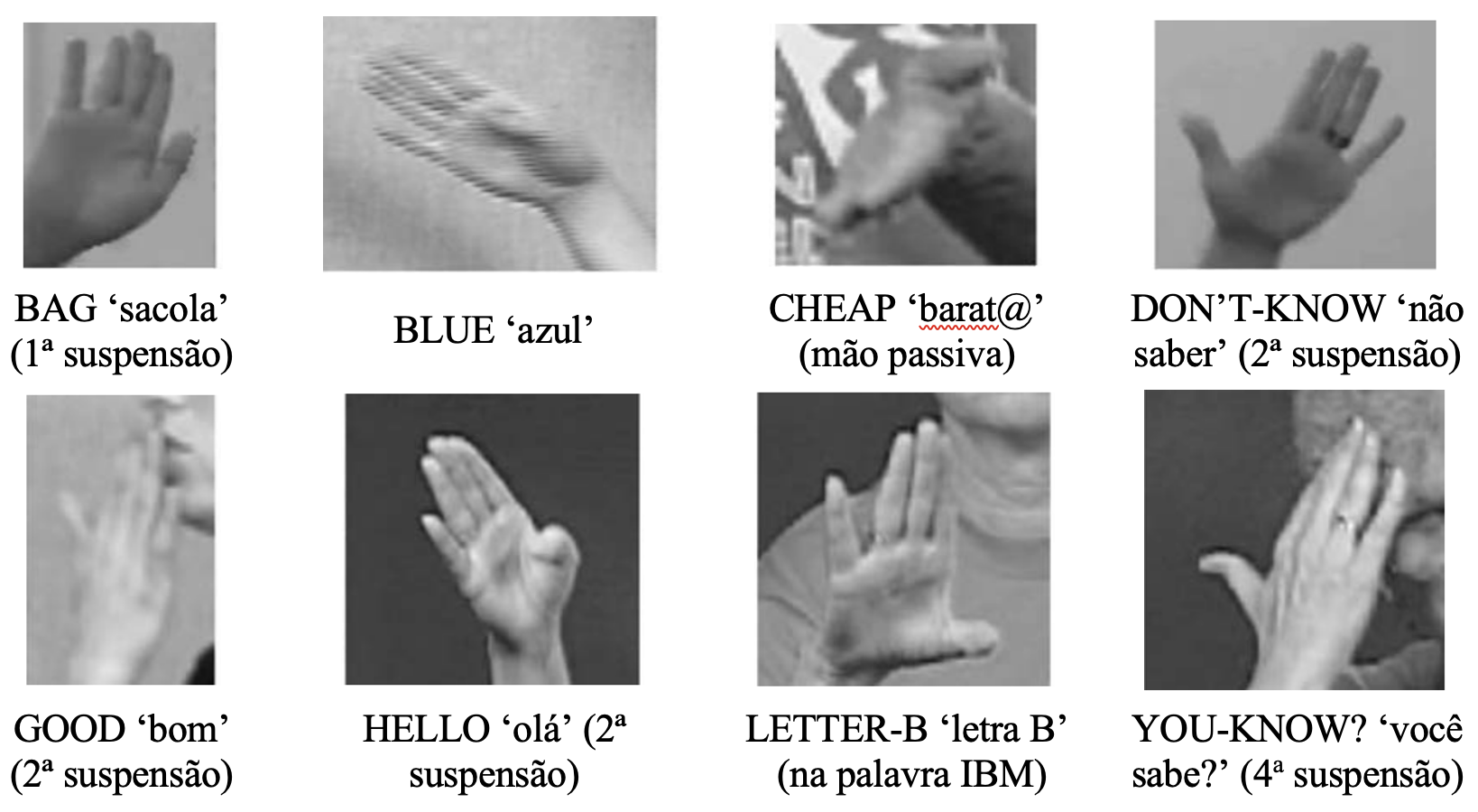 Stokoe (1960) observou também que a realização de uma dada configuração de mão, ou de um dado ponto de articulação ou ainda de um dado movimento pode variar. O primeiro tipo de variação pode ser observado nas duas produções do sinal OBRIGAD@ da libras (Figura 2)[1]. Na Figura 2a, vemos o polegar abduzido em relação ao indicador. Já na Figura 2b, vemos o polegar em contato com esse mesmo dedo.