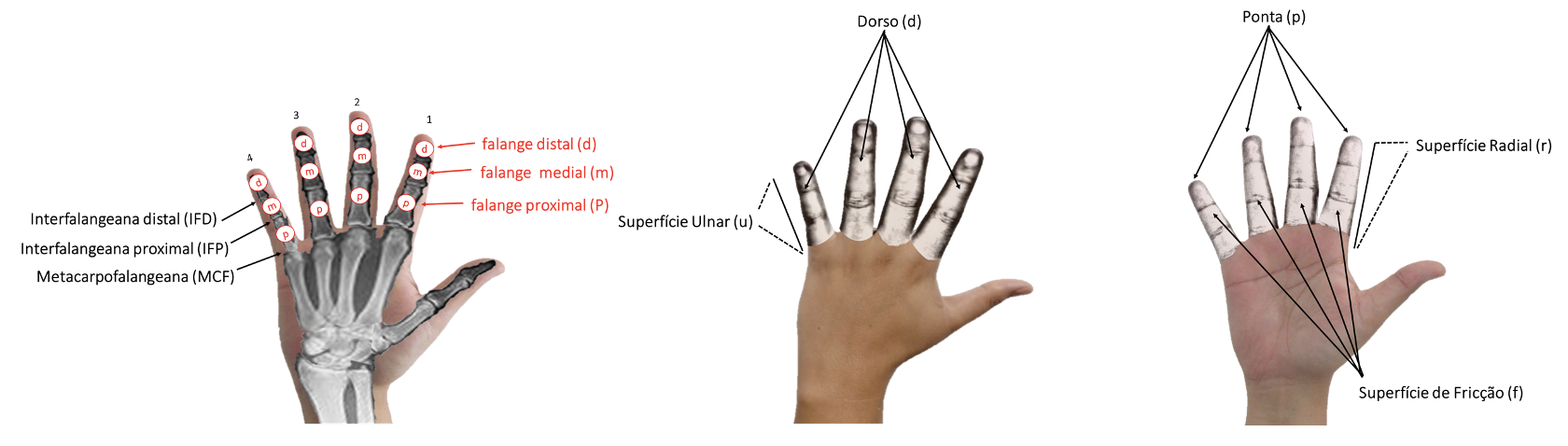 Figura 5. Partes dos dedos indicador, médio, anelar e mínimo