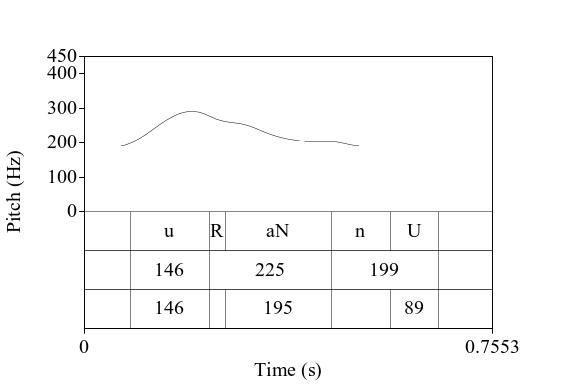 A figura abaixo, retirada de Raso (2023) mostra a realização da sequência segmental Urano com três formas ilocucionárias diferentes: asserção de resposta, expressão de incredulidade e confirmação, depois repetida com atitude diferente.