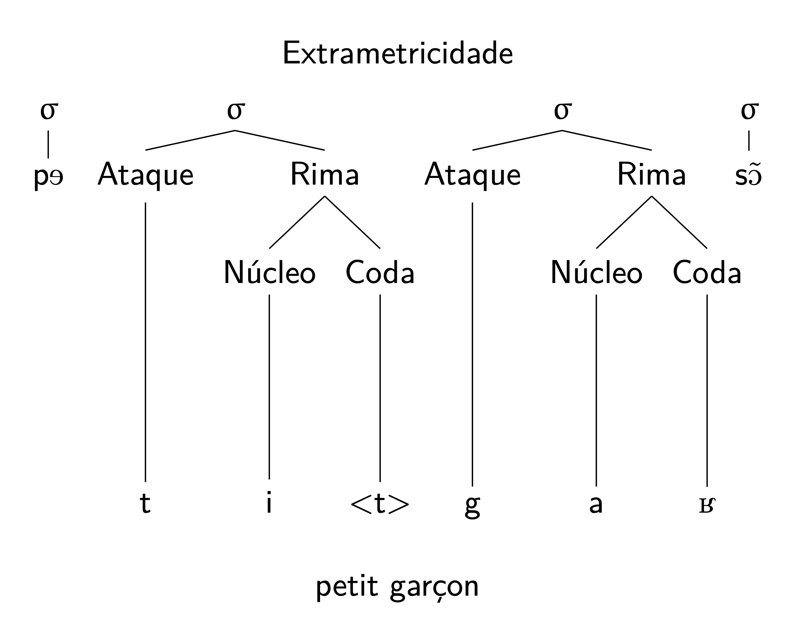 Do ponto de vista prosódico, é mais ou menos consensual que sílabas (σ) estão subordinadas a palavras fonológicas (ω). Outra hipótese é a de que a relação entre sílabas e palavras prosódicas seja intermediada por pés métricos (Σ), unidades rítmicas acentuais assumidas como constituintes por muitos autores. Assim, uma palavra como borboleta seria constituída de dois pés métricos, neste caso troqueus silábicos — pés formados de duas sílabas com núcleo à esquerda, sendo o pé da direita, em virtude da direcionalidade do processo de atribuição do acento, no caso do português, o que comporta a proeminência principal da palavra.